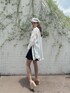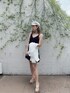 GYDAでは珍しいミニ丈のワンピース❤︎シアーシャツと合わせて今の時期でも程よい肌見せができるコーディネートにしました。生地をたっぷり使っているのでフレアにボリュームがあり女の子らしくデートにもぴったりなワンピースです❤︎丈が短めなので今まで丈が長すぎて自分に合うワンピースがなかなか見つからないという方にぴったりなアイテムです!パットは付いてないないのでboosterブラトップを私は中に着用してます。夏らしくコルクサンダルを合わせました❤︎