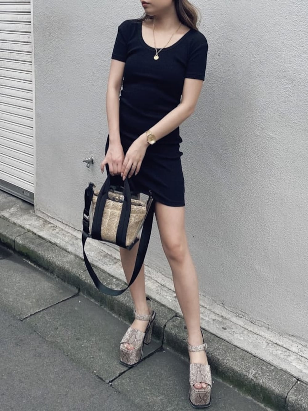 大人気のクルーネックテレコタイトワンピース❤︎テレコ素材なので伸縮性がありボディにフィットするデザインが身体のラインを綺麗に見せてくれます。羽織を合わせて春、夏、秋シーズンで様々なコーディネートができ着回し◎私は夏らしく1枚で着用しクリアバッグにPythonアンクルベルトチャンキーサンダルのミックスを合わせシンプルになりすぎないような女性らしいコーディネートにしました。厚底サンダルを合わせることで美脚効果◎カジュアルにもキレイめにも着用できる万能アイテムです。