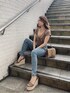 シンプルだけど夏らしいコーディネート❤︎お気に入りの2WAYワッフルスピンドルTシャツはワッフル生地を使用しているので着心地も良く夏にぴったりなトップスです!前後好きな方で着用できるので気分に合わせてコーディネートを楽しんで頂けます。私はレースアップデザインが見えるように着用するのがお気に入りなのでデニムはノーダメージデニムを合わせました。JAPANデニムは丈夫で長持ちしどんなトップスとの相性も抜群です。股上がミドル丈なのでショートトップスと合わせるとちらっと肌見せできるのも夏らしくバランスが取りやすいです❤︎コーディネートがシンプルなので夏らしいバッグとサンダルを合わせ、アクセサリーは大振りなゴールドで統一しました❤︎