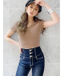 maki(GYDA)のデニムパンツ「ミドルウエスト SHAPELYスキニーデニムパンツ」を使ったコーディネート