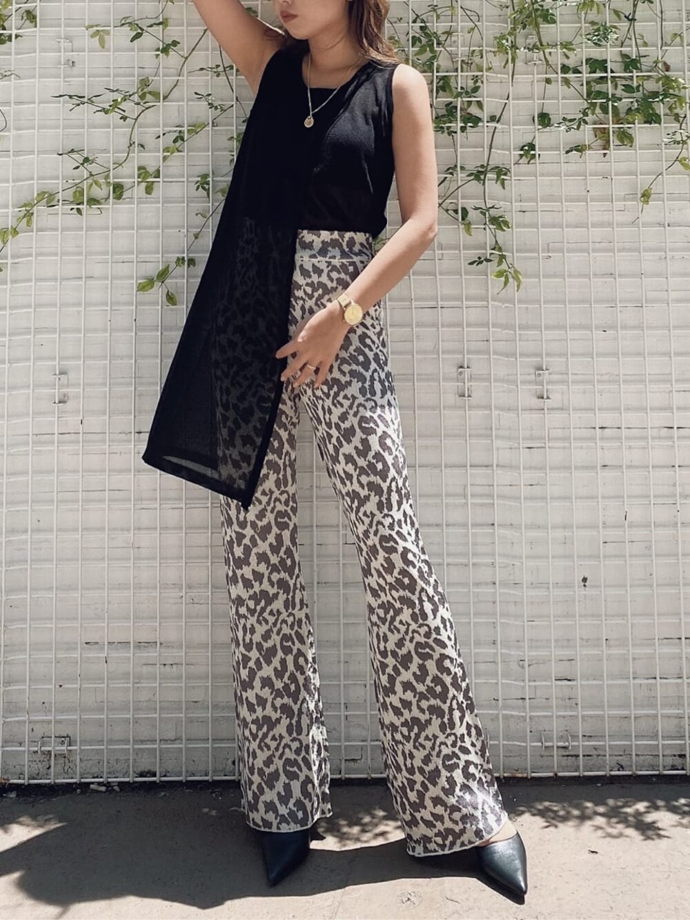 薄手のサマーニットが夏らしい印象のニットタンクです。これから本格的に暑い夏でも涼しく着ていただけます♪透け感があるのでインナーを合わせて着用しても◎私はboosterブラトップを合わせて着用しました!アシンメトリーデザインが珍しく動きがある可愛いトップスです。シンプルなので柄物からシンプルなデニム幅広いボトムと合わせて頂けます。パンツはジャガード編みのニットパンツです。ハイウエストとフレアの組み合わせで美脚効果◎GYDAで定番なポインテットミュールと合わせてレディーライクなコーディネートに仕上げました。