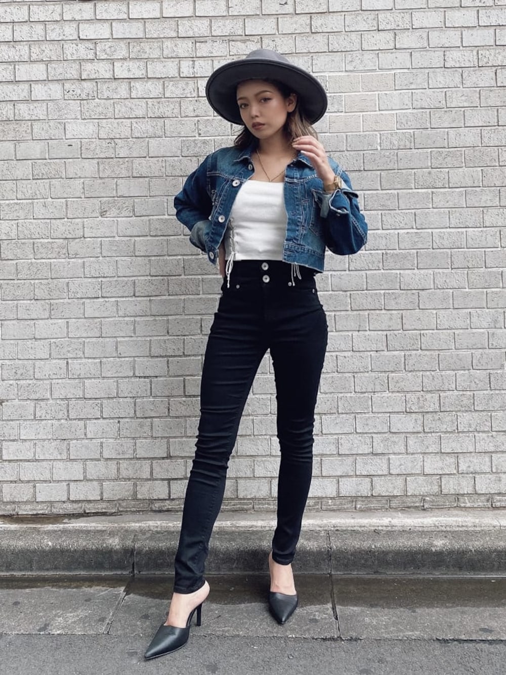 秋のおすすめコーディネート🍂 タイトなショートデニムGジャンにハイウエストパンツを合わせたシンプルなコーディネートです!ハットを合わせカッコイイ印象を演出しました❤︎ 今季のショートデニムGジャンはダメージもないデザインなので着回し抜群な1枚❤︎オーバーサイズトップスからワンピース、ビスチェ幅広いコーディネートが組みやすいショートGジャンです。まだ暑い日が続くので私はビスチェを合わせました! 大人気のハイウエストボタンシリーズは高めの股上になっているので美脚効果抜群なスキニーパンツです。ストレッチもあるので窮屈感なく今の時期から履いて頂けるスキニーパンツなのでGYDAが初めてという方でも挑戦しやすいパンツです❤︎