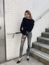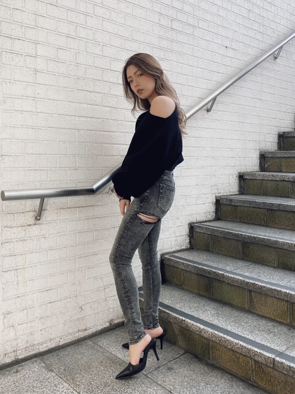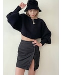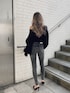レディライクなオールブラックコーデ🖤 珍しいスラッシュドネックでオフショルでも着用して頂けるリブニットトップスです。丈が少し短いのでミドルウエストのデニムと合わせるとバランス良く着用して頂けます。