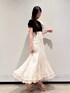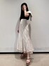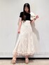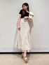 *tops* size:free 大きなリボンが目を惹くニット。 斜めのネックラインがこなれ感があり デコルテもスッキリ見せてくれます。 リボンはボタンで取り外しもできて、 シンプルなワンショルニットとして 雰囲気を変えても使えます⸜❤︎⸝ *skirt* size:XS キラキラレースと裾のチュールが華やかなスカート。 柔らかく落ち感のある素材でふわっと動きのある マーメイドラインがとっても可愛い🐠 バックレースアップでウエスト調節もでき XSからサイズ展開があるので低身長さんも安心です♡ *shoes* size:34 クリアチューブの透け感が可愛い♡ 傾斜が少なく長時間の着用も余裕で どんなお出かけにも対応できちゃいます!