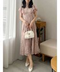 *one-piece* size:S ラメ感もある華やかな刺繍が印象的な主役級ドレス。 ウエスト切り替えは胸下でカーブになっていて、より脚長効果が期待できます♡ たっぷり生地を使ったラッフルのお袖はオーガンジーとの2枚重ねで華やか。 フレアに広がるので二の腕カバーも叶います♡ 結婚式のお呼ばれだけでなく特別な日の一枚にもぜひ💎 *shoes* size:36 トレンドのバレエコアなパンプス♥ スクエアトゥ&ステッチ入りのソールで甘すぎず、 綺麗めもカジュアルめなコーデにもマッチします♥