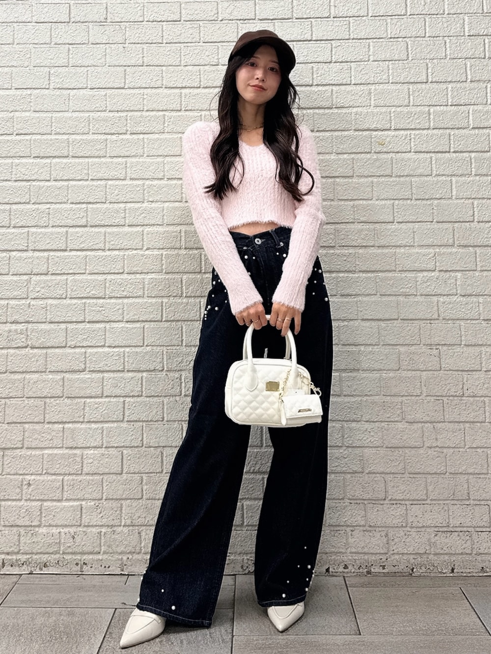 *tops* size:F ふわふわの手触りでやみつきに♡ シャギーのニットですがコンパクトなシルエット感で着膨れ感は気になりません♡ Vネックと短め丈で女っぽなスタイリングに。 *pants* size:S パール付きで華やかなデニム♥ ハイウエストめのストレートシルエットで足もスッキリ見せてくれます✨ インディゴのカラーはパールがより目立って夜空のようで綺麗です🌙 *shoes* size:36 スッキリとしたポインテッドトゥのデザインで 大人っぽく、シュッと見えて脚長効果も♥