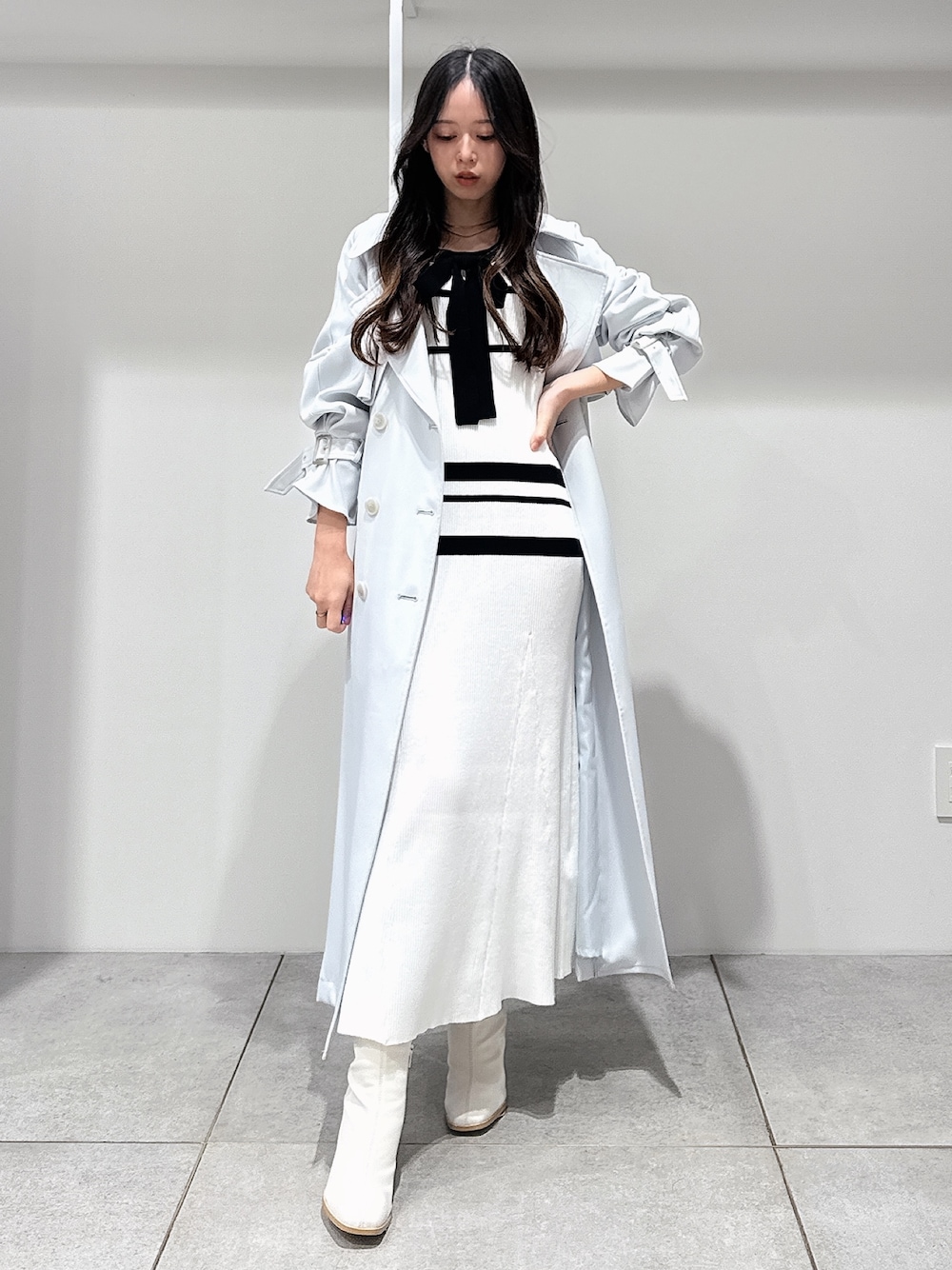 *coat* size:XS 淡く華やかなカラー展開🙆♀️ 柔らかくてかちっとしすぎない🙆♀️ 軽い&シワにもなりにくい🙆♀️ ベーシックで何にでも合わせやすくて飽きずに長く着られる🙆♀️ 春の大定番のトレンチ♡ XS〜Mサイズの3サイズ展開なので身長に合わせて選べます♡ *one-piece* size:S リブニットワンピで着心地◎ Iライン×モノトーンでスッキリ。 自然とくびれてくれてシルエット綺麗です♡ *shoes* size:36 ヒールがキラキラで可愛すぎるショートブーツ♡ 長めのスクエアトゥで大人っぽくすっきりした印象に。 太ヒールで安定感もあり疲れを感じにくいです☻