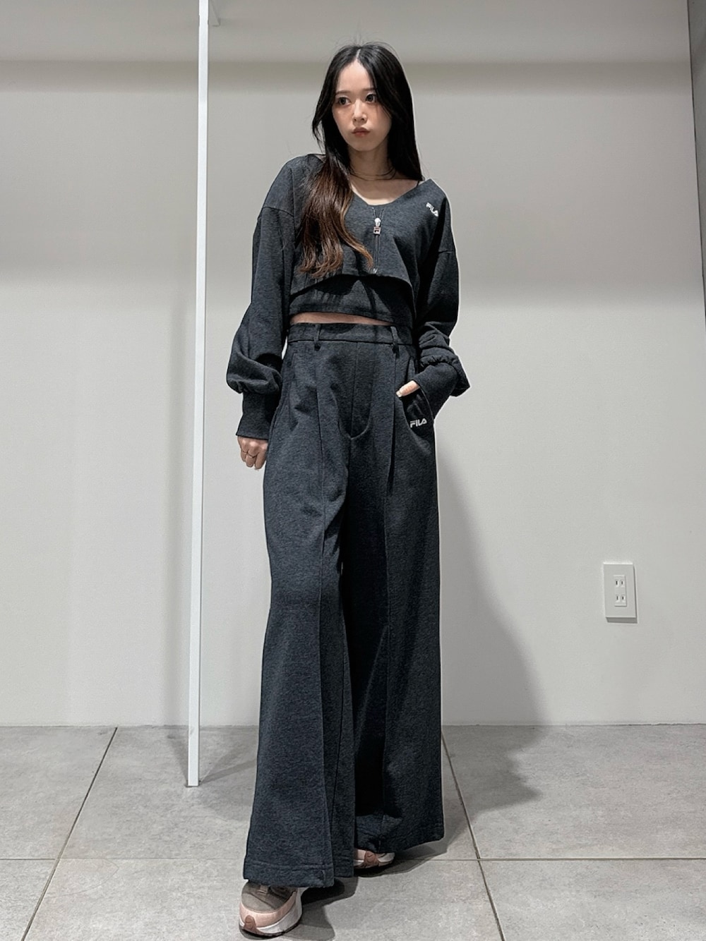 *tops* size:F カップ付きのキャミとショート丈ボレロのセットアイテム♡ インナーはアンダーにゴムも入っていて安心感も◎ 裏毛でカジュアルながら色気もある一枚です♡ *pants* size:S センターシームやベルトループもついていて 裏毛パンツも上品キレイめに見せてくれます♡ ストンと落ちるラインを拾わないワイドシルエットでスタイルアップも◎