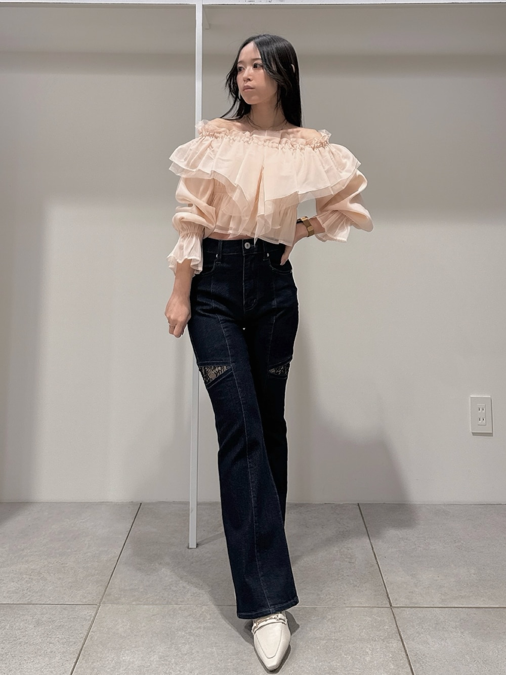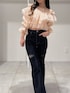 *tops* size:F 春の主役級ブラウス♡ オーガンジーとチュールの贅沢なダブル使いで ふわっふわなボリューム感に。 映え間違いなしです⸜❤︎⸝ *pants* size:S カットラインからレースがチラ見え♡ 生地の切り替えがセンターラインになって よりすらっときれいに見せてくれます◎ *shoes* size:36 春大活躍なミュール。 シュッとしたスクエアトゥのローファーデザインで大人っぽく仕上がります。 太めのスクエアヒールで安定感抜群です♥