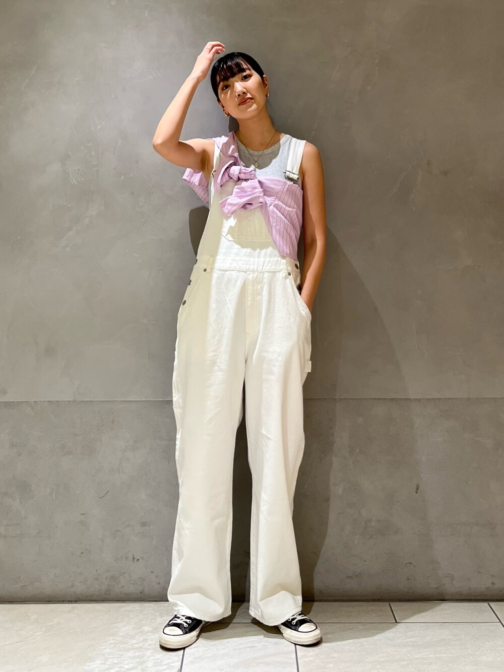 【シャツ】ショートシャツで小柄さんも高身長さんもバランスのとりやすい1着♡169cmの私でも、短すぎる事なくハイウェストのボトムス合わせでお腹出す事なく着れちゃいます! 【サロペット】ルーズなシルエットが可愛くて、柔らかくて穿きやすい!丈感も調整できるので小柄さんはヒールや厚底合わせ、高身長さんはMAX伸ばすくらいで短く感じる事なく合わせられます♡