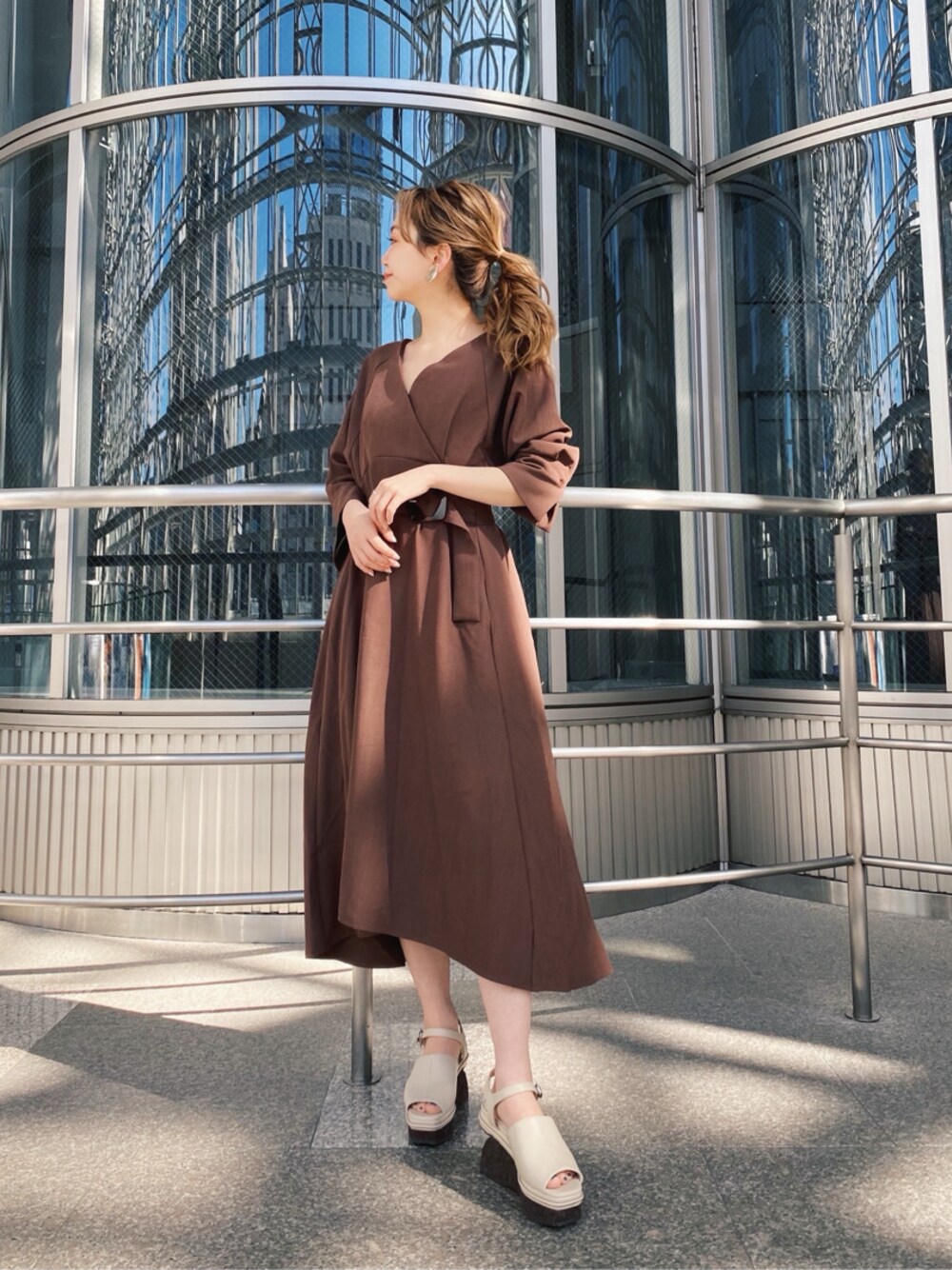 磯目理瑠華(MURUA)のワンピース「カシュクールコルセットワンピース」を使ったコーディネート