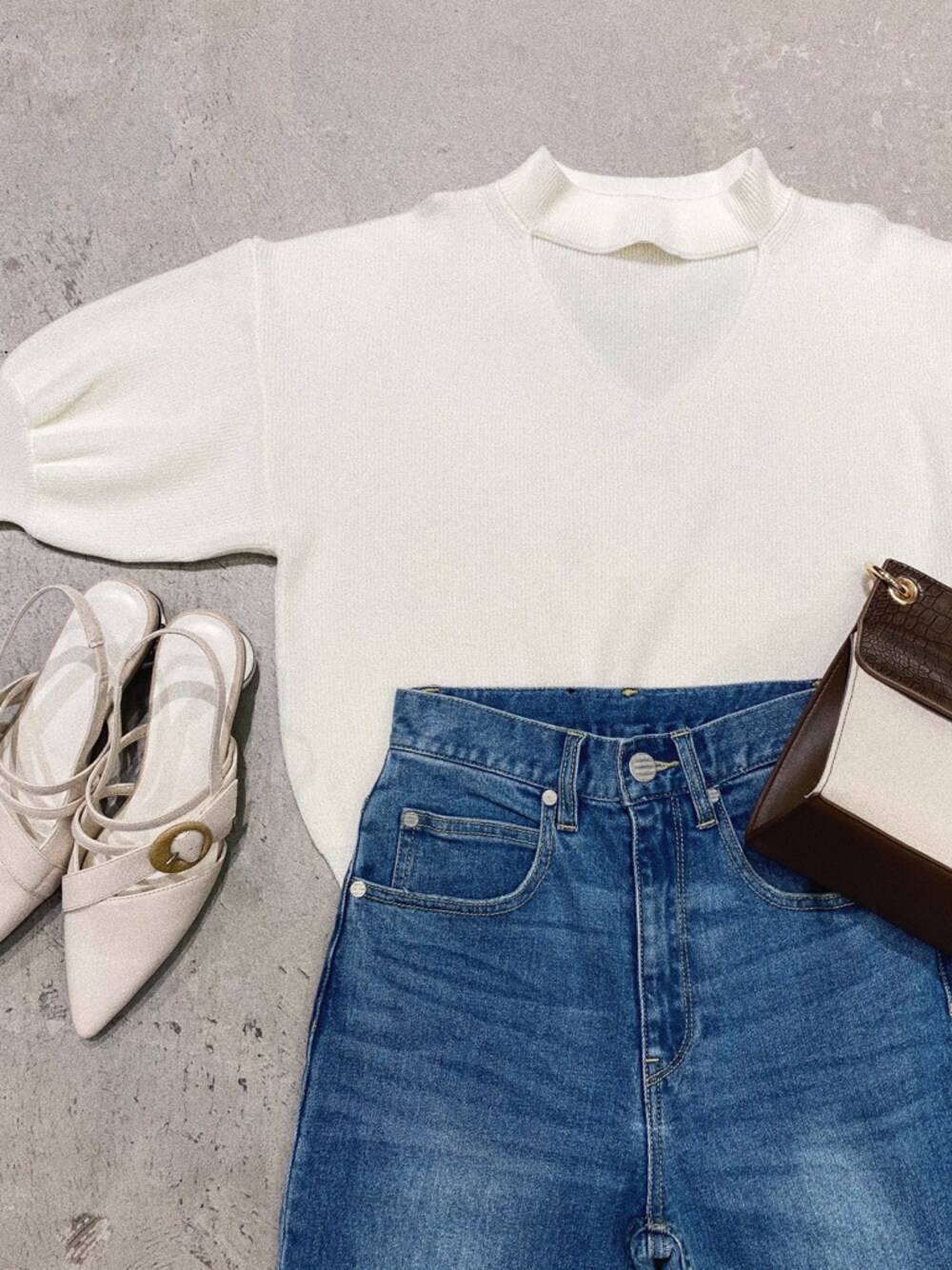 磯目理瑠華(MURUA)のニット/セーター「ドライタッチチョーカーハーフニット」を使ったコーディネート