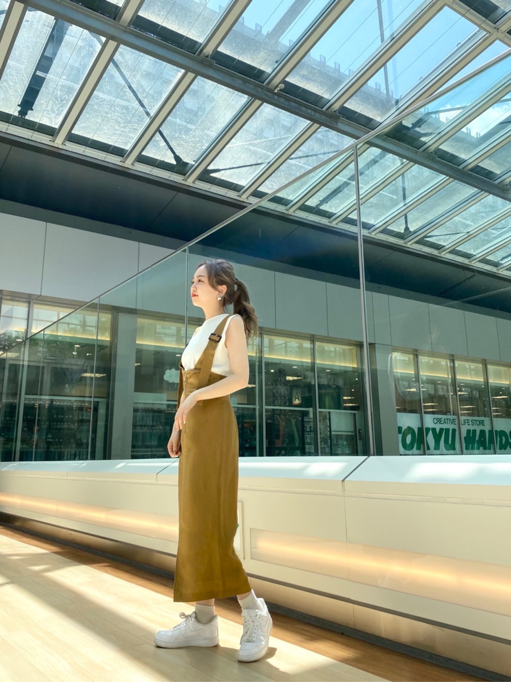 磯目理瑠華(MURUA)のニット/セーター「ショルダーカバータンクトップ」を使ったコーディネート