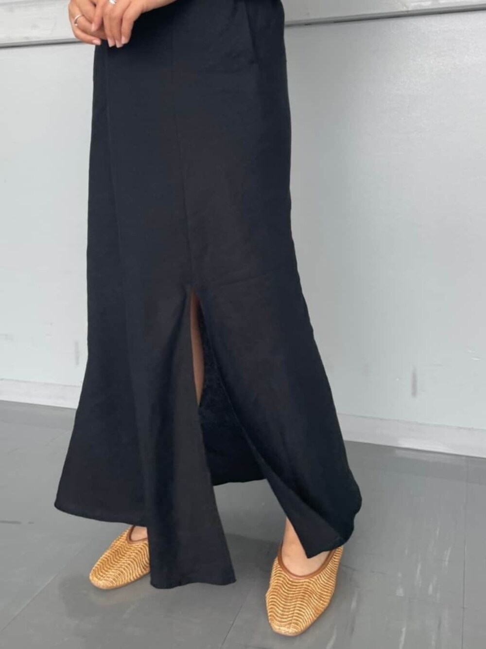 前回大好評だったスカートが再入荷しました! 麻混でブラックでも重く見えず着心地もサラサラです