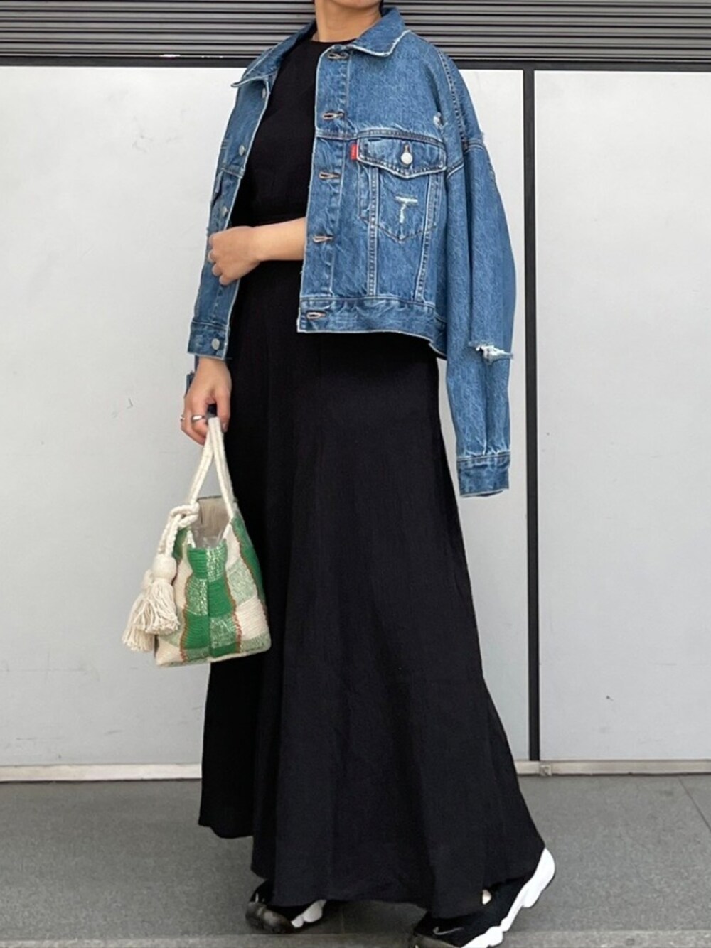 リアルなダメージ感とコンパクトな着丈がかわいいデニムジャケット♡ 視線が上に行くのでスタイルアップ効果が抜群です☺️ 脱いだ時のレディーライクなワンピースとのギャップでおしゃれ見えします。 今期はデニム×デニムのセットアップスタイリングもおすすめです!