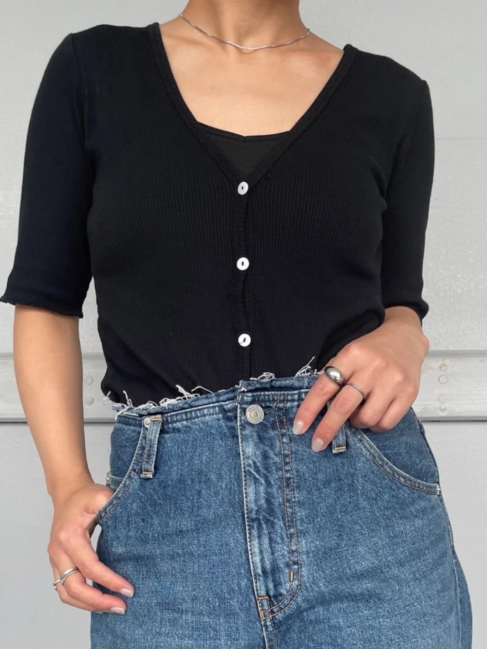 フィット感が絶妙なカーディガンでVネックが深いためスッキリ見えます☻ コンパクトなシルエットなのでインしてもかわいいです!
