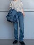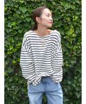 上園揚子(Ungrid)のTシャツ/カットソー「サイドスリットルーズボーダーロングスリーブTee」を使ったコーディネート