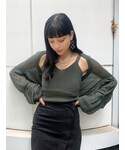 矢作南菜実(EMODA)のカーディガン/ボレロ「シャーリングボレロニットセット」を使ったコーディネート
