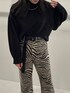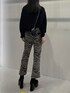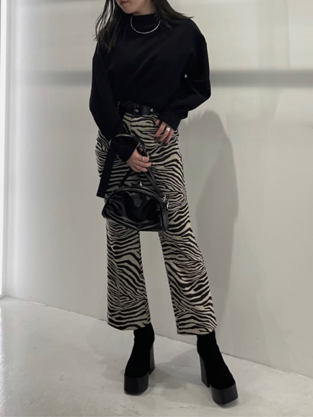 ゼブラ柄をポイントにしたモノトーンコーデ❤︎ 履くだけでクールで女性らしい雰囲気になれるゼブラ柄がオススメです! フレアシルエットになっているので美脚効果抜群です❤︎何より生地が柔らかくとっても動きやすさ◎ アンクル丈なのでブーツで合わせるとよりスタイルアップ効果抜群です❤︎