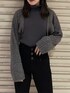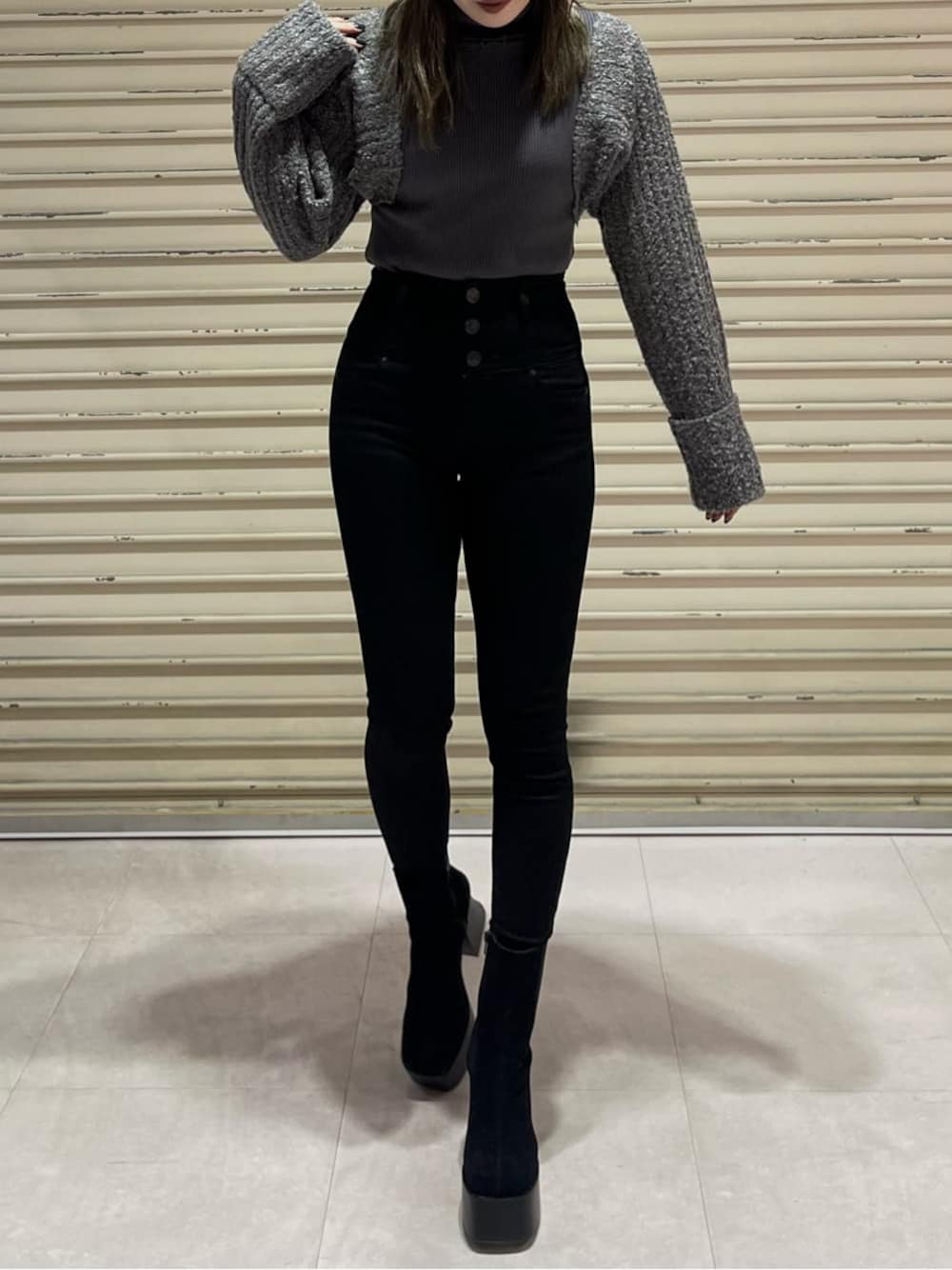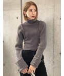 ボレロを着ているようなレイヤード風のデザインニット❤︎ タイトな身頃ですがリブ加工になっていて伸縮性があるので着心地がとても良いです!ハイネックの部分や裾部分にもクラッシュのデザインが施されているところもオシャレポイント❤︎ これ1枚でEMODAらしいスタイリングが出来ちゃうアイテムとなってます! 合わせているデニムはEMODA定番のELDERシリーズのNUDEハイウエストデニムです❤︎ 伸縮性抜群なのはもちろん、引き締め効果もしっかりあるのでかなり補正され美脚効果◎ 是非Checkしてみて下さい❤︎