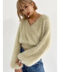 【トップス】シャギーが女性らしさ◎なもふもふニット❤︎毛足が長いのでふんわりと着心地良いです!Uネックとカシュクールの前後2wayなのでその日のスタイリングに合わせて着れます! 【デニム】4つボタンのスーパーハイウエストフレアなので脚長効果はもちろん、ウエスト部分のサイドにカーブ状の切り替えがあることでウエスト周りの細見え効果もある激盛れ間違えなしのデニムです! 【シューズ】23.5でMサイズ着用してます!傾斜がゆるやかなので長時間履いてても疲れないです!