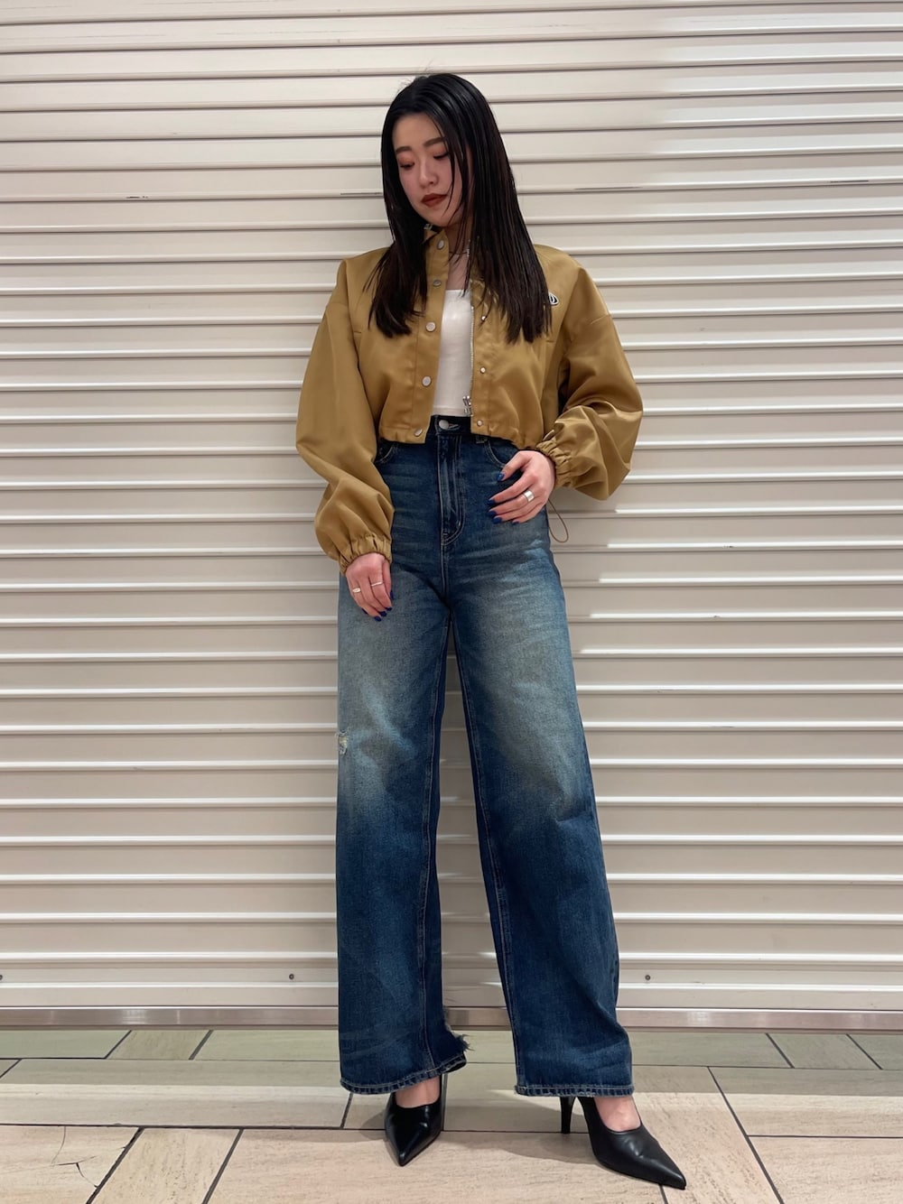 矢作南菜実(EMODA)のブルゾン「ナイロンショートブルゾン」を使ったコーディネート