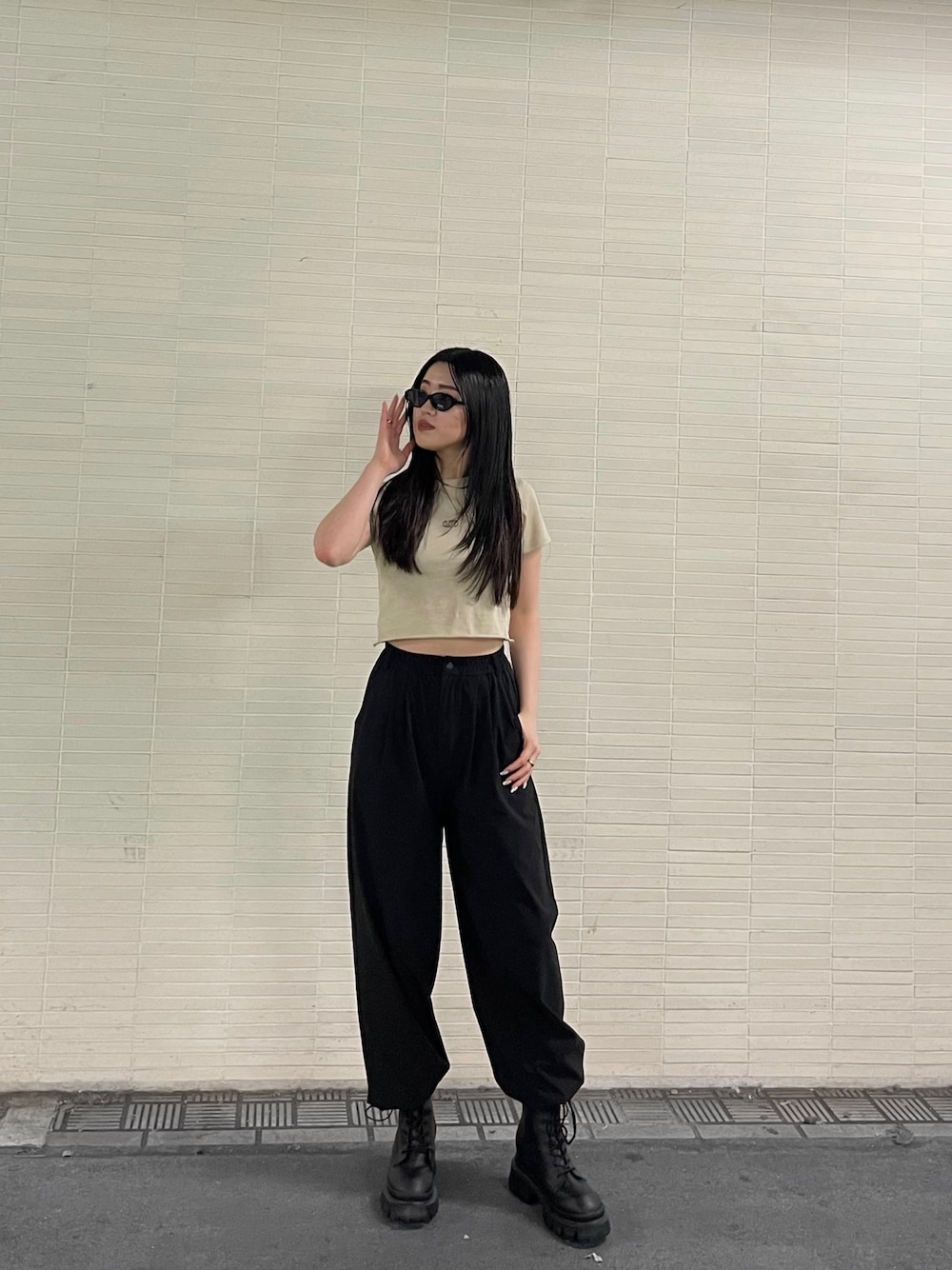【トップス】オリジナルのクロスeのロゴマークがポイントです!コンパクトなサイズ感で今季らしいシルエットがかわいい❤︎ 裾はカットオフ使用でこなれ感◎ 【ボトムス】トレンド感が一気に出せるナイロン生地を使用したパンツ! ボリュームが出過ぎないところとウエスト部分がゴム仕様で楽ちんなとこも嬉しいです! 【シューズ】タンクソール+インソールでスタイルアップ効果抜群です!何より軽いので長時間履いてても疲れません! 23.5㎝でMサイズ着用してます!