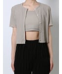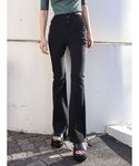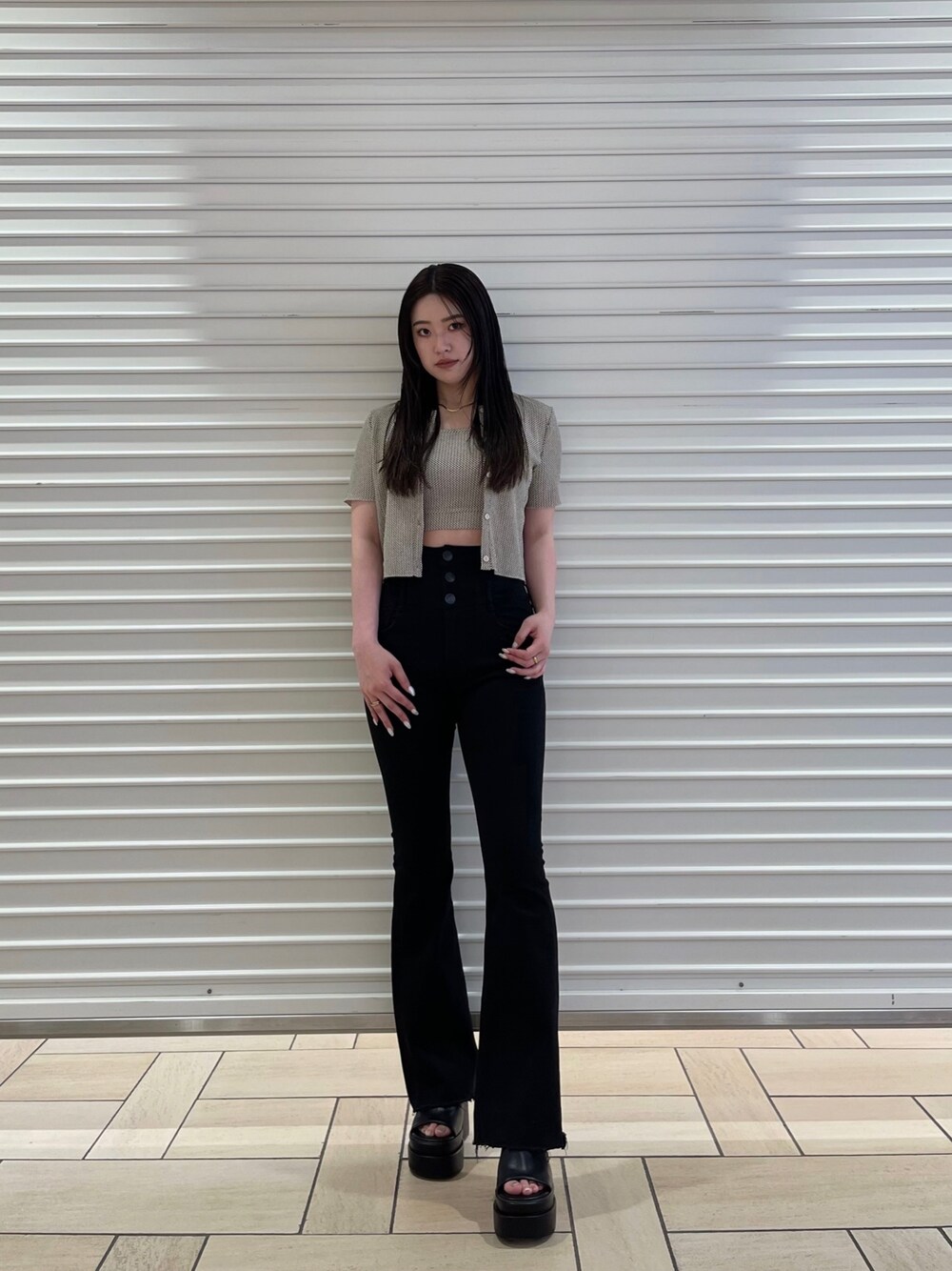 【トップス】 キャミとカーデ別々でも使えます! ジャガード素材でシンプル過ぎず存在感のある1枚です!生地感も薄めでサラッと着やすいです! 【デニム】 フレアシルエットで脚長効果◎程よい引き締め効果と伸縮性もあるので履きやすいです! ウエストのカットデザインがチラッと肌見せしてくれて可愛いのでぜひチェックしてみて下さい❤︎
