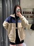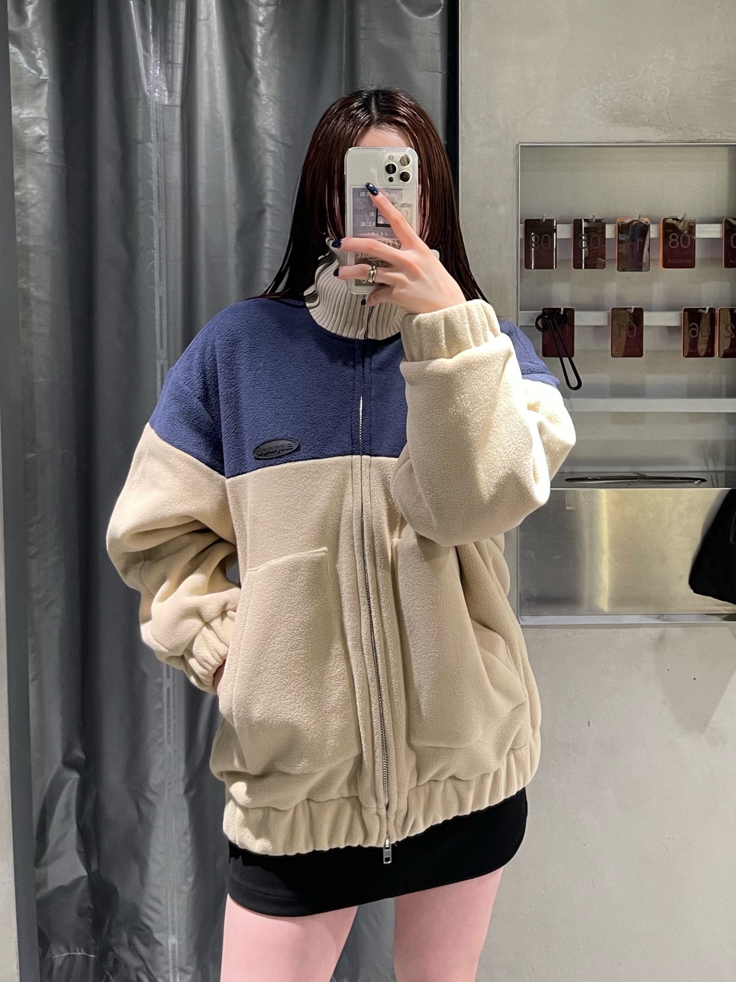 配色がかわいいフリースブルゾン❤︎ オーバーサイズですが裾はゴム入りなので締まりが出てメリハリがつきます! もちろん中にも着込めるし襟は肉厚のリブになっているので前を閉めて着れば防寒性◎ ミニスカとブーツ合わせでレディライクにまとめました❤︎