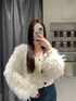 ホワイト系のカーディガン/ボレロを着用したレディースの秋コーディネートの2枚目の写真