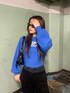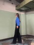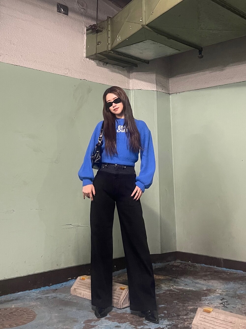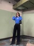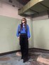 青を差しカラーにしたコーデ❤︎ トップスは袖の部分がパフスリーブのシルエットで身頃部分もゆったりしていて着やすさ◎ 合わせているデニムはウエストデザインがポイントで今年っぽく履けます!ハイウエストなので脚長効果は間違えなし❤︎