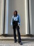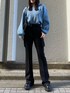 ブルーを差しカラーにしたコーデ! トップスは落ち感のあるラフでサラッと着心地◎左胸のハートの刺繍も今季っぽくてアイキャッチーなデザイン❤︎ ボトムはフレアシルエットのカーゴパンツでカジュアル使いも綺麗目使いもどちらも出来ちゃう万能アイテム!ハイウエストで履けるのはもちろんサイドのポケットの位置が高めなのとセンターラインがあるのでスラッと脚長美脚盛れ間違えなしです!