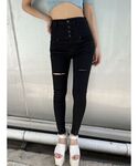 4つボタンのハイウエストでウエスト位置がより高く見え、スリットのデザインも太ももの高めの位置に入っているので足長効果、美脚効果抜群なデニムです❤︎ 引き締め効果はもちろん、伸縮性もある為動きやすさも◎です!