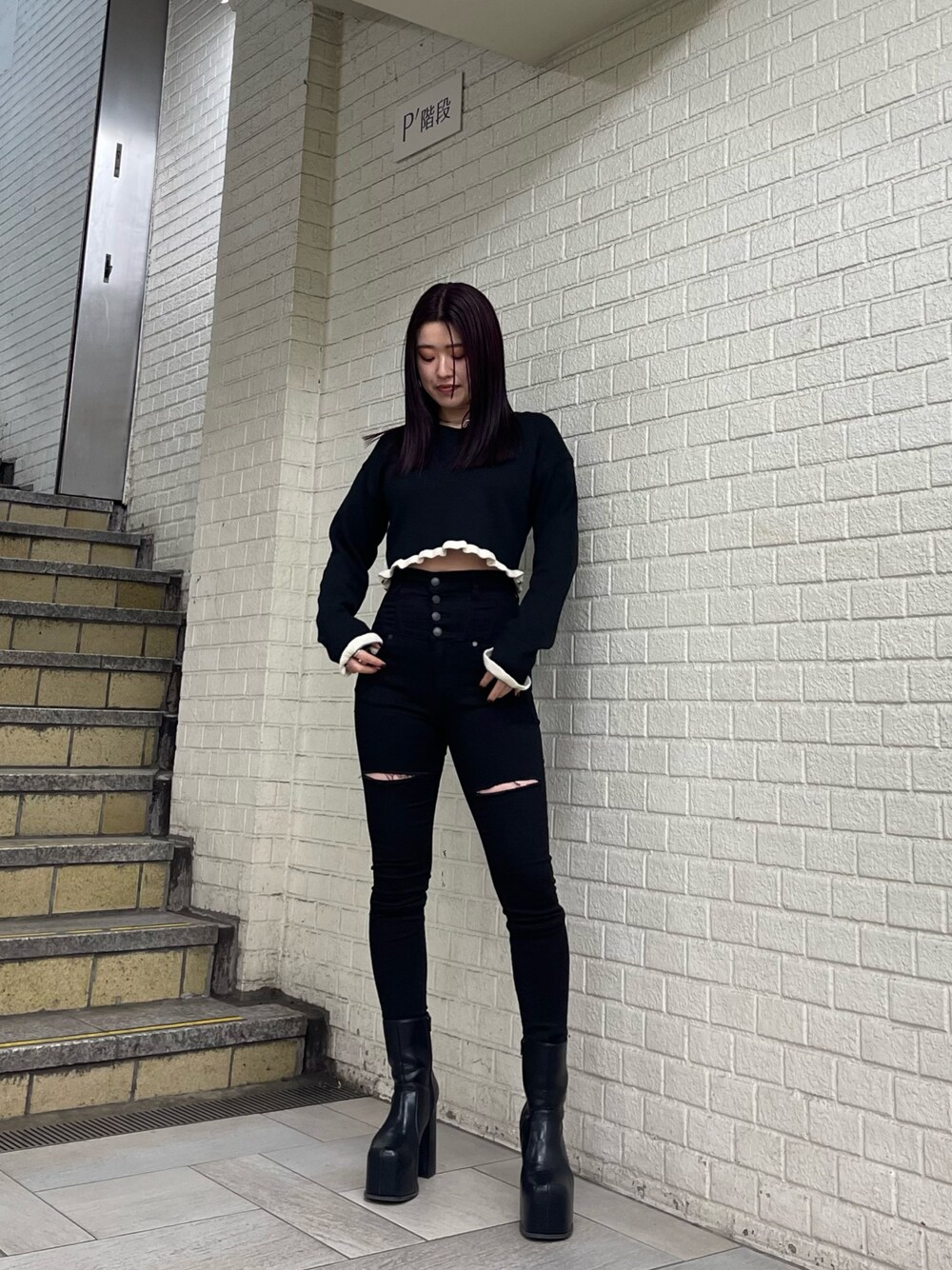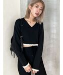 矢作南菜実(EMODA)のニット/セーター「Vネックフリルショートニット」を使ったコーディネート