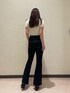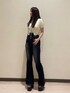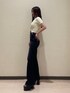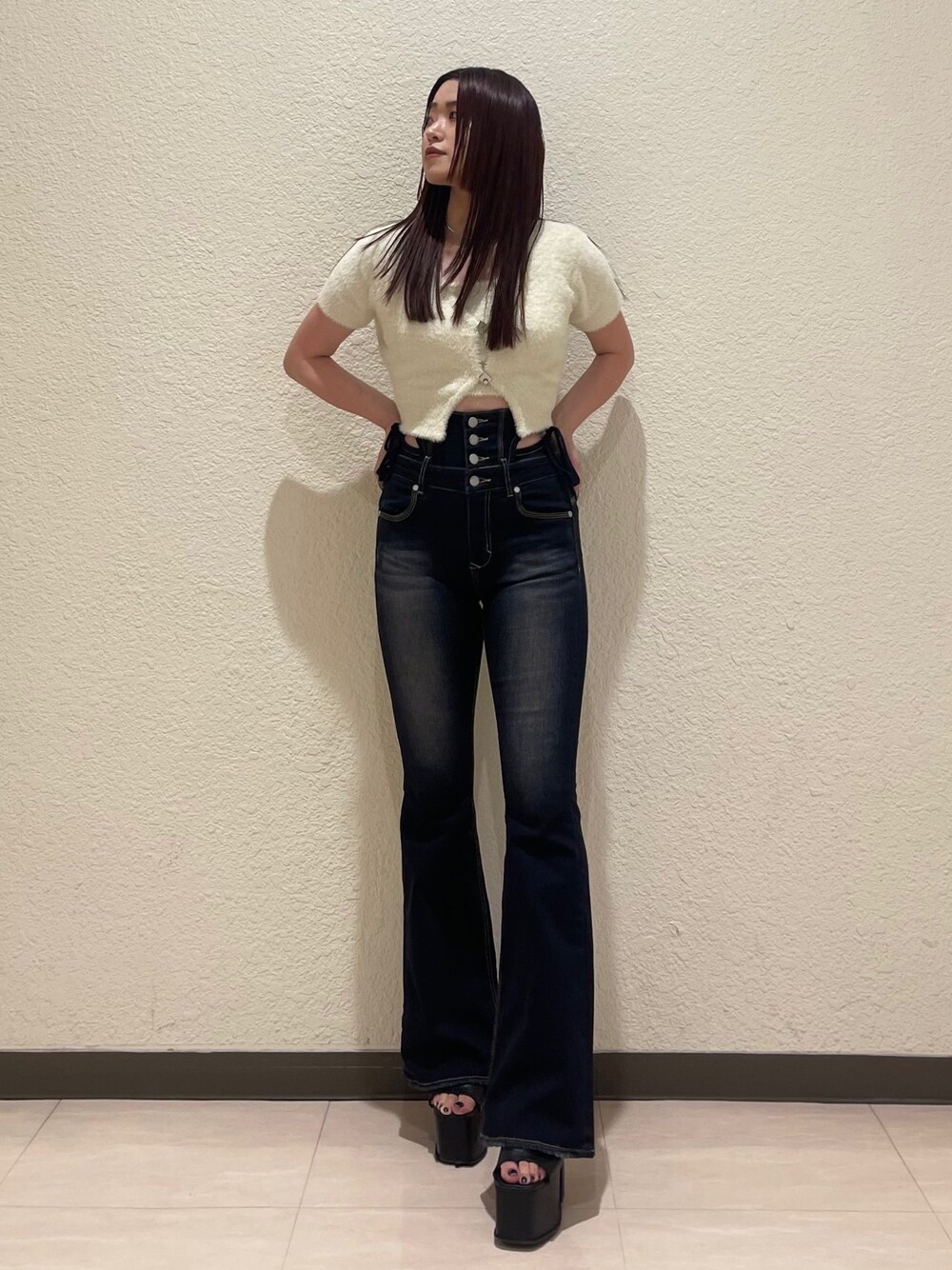 矢作南菜実(EMODA)のデニムパンツ「カットアウトリボンハイウエストフレアパギンス」を使ったコーディネート