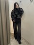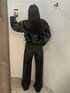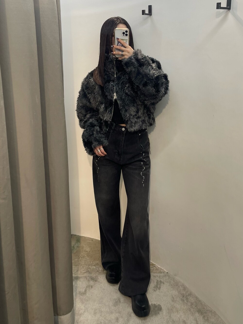【outer】 ボアのボリュームがインパクトのあるアウター❤︎ ショート丈なのでコンパクトな印象に見せてくれるのでバランス良く着用出来ます! 逆開ファスナーなので裾部分を開けてインナーをチラ見せさせるのもオススメです❤︎ 羽織るととっても軽いので着やすさ◎です! 【bottom】 ラインストーンがポイント❤︎ ポケット口の位置を下げたデザインになっているので今季っぽくルーズ感の出るシルエットで履いて頂けます! ハイウエスト仕様で脚長効果◎ 165㎝の身長でSサイズ着用でも脚首隠れます!