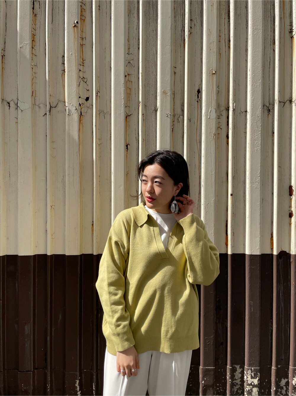 暖かくなってくるとカラーアイテムを着たくなりませんか?☺︎ 春にも着やすいニットでとにかく肌触りが気持ち良く、配色もニット素材なので柔らかい色味になっております☺︎カラー物着られない方でも挑戦しやすいと思います!! レイヤードはロゴTeeを見せて頂いても○ 暖かくなってきたら半袖のTシャツでも良いと思います!! お持ちのアイテムで組み合わせてみて下さい♪ タックパンツを合わせることで一気にこなれ感が出るのでおすすめです❤︎