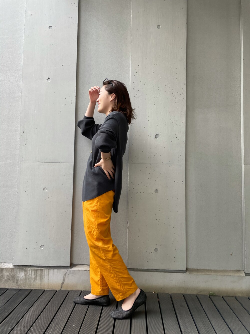 最近気温がバラバラで着るものに困りますよね、 そしてこれから梅雨時期に入ります。 今回のコーデポイントはラフだけど格好良さも忘れずに❤︎ ワッフルTeeはシンプルなデザインなので、物足りなくならない様にカラーパンツと合わせました! ボトムスにインをしなくてもサイドのスリットがバランスを取ってくれますよ○ 着心地も良くお家時間が多いこの時期にもとてもおすすめです♪