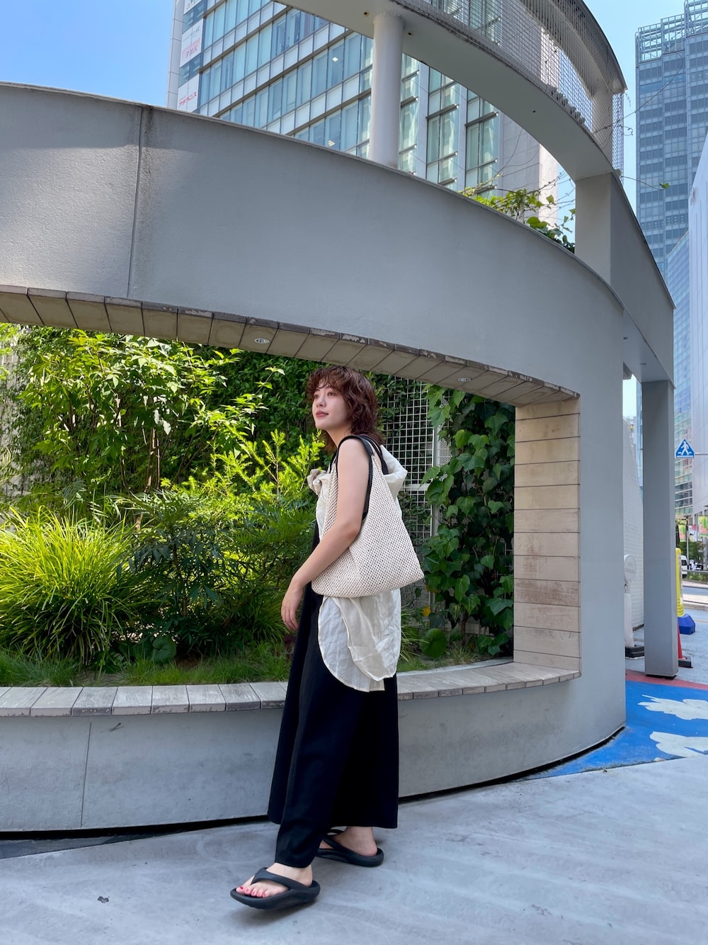 大熊亜美(Ungrid)のワンピース「リネン混ショルダーデザインキャミワンピース」を使ったコーディネート