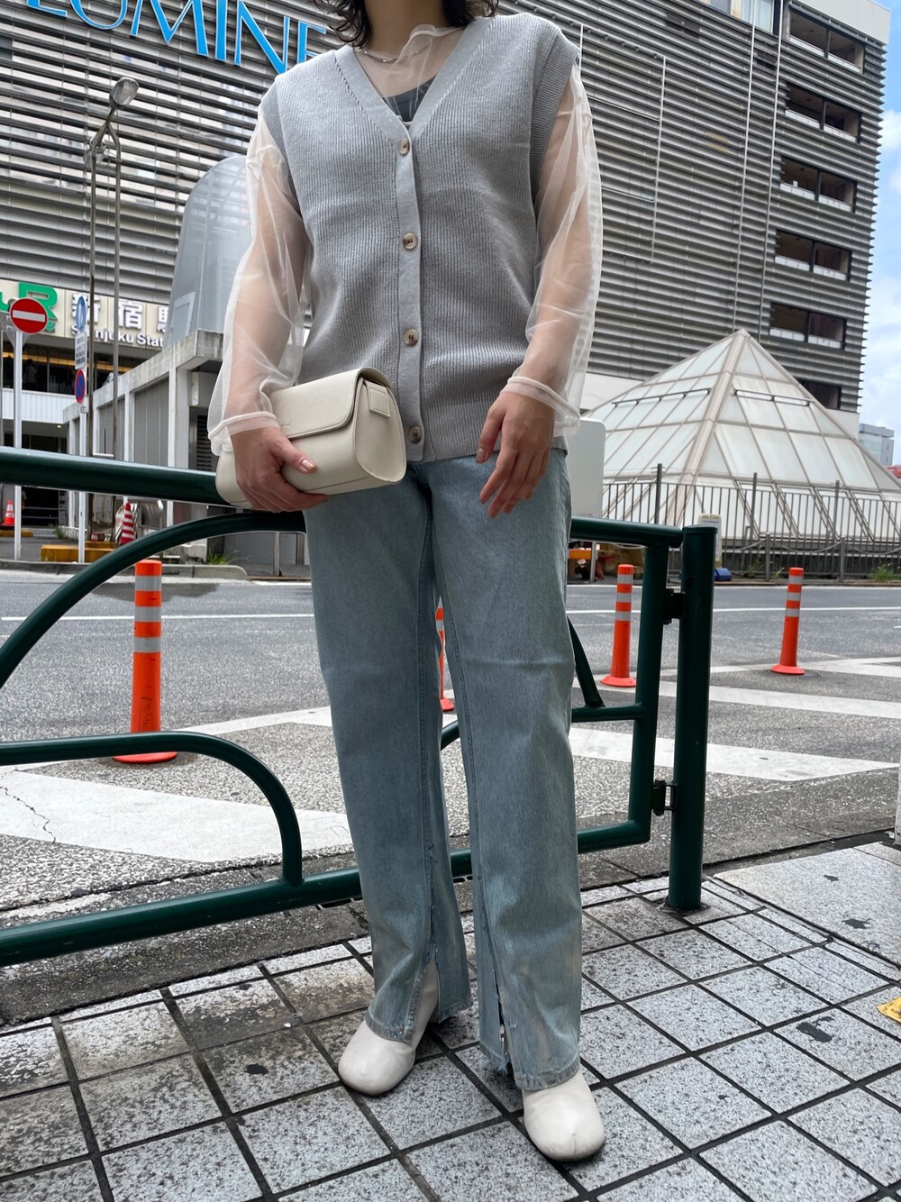 大熊亜美(Ungrid)のデニムパンツ「箔プリントスリットデニム」を使ったコーディネート