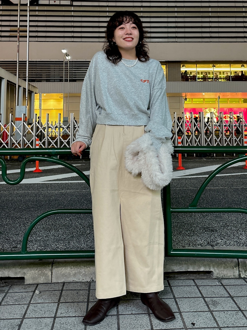 大熊亜美(Ungrid)のスウェット「バックプリントショートスウェット」を使ったコーディネート