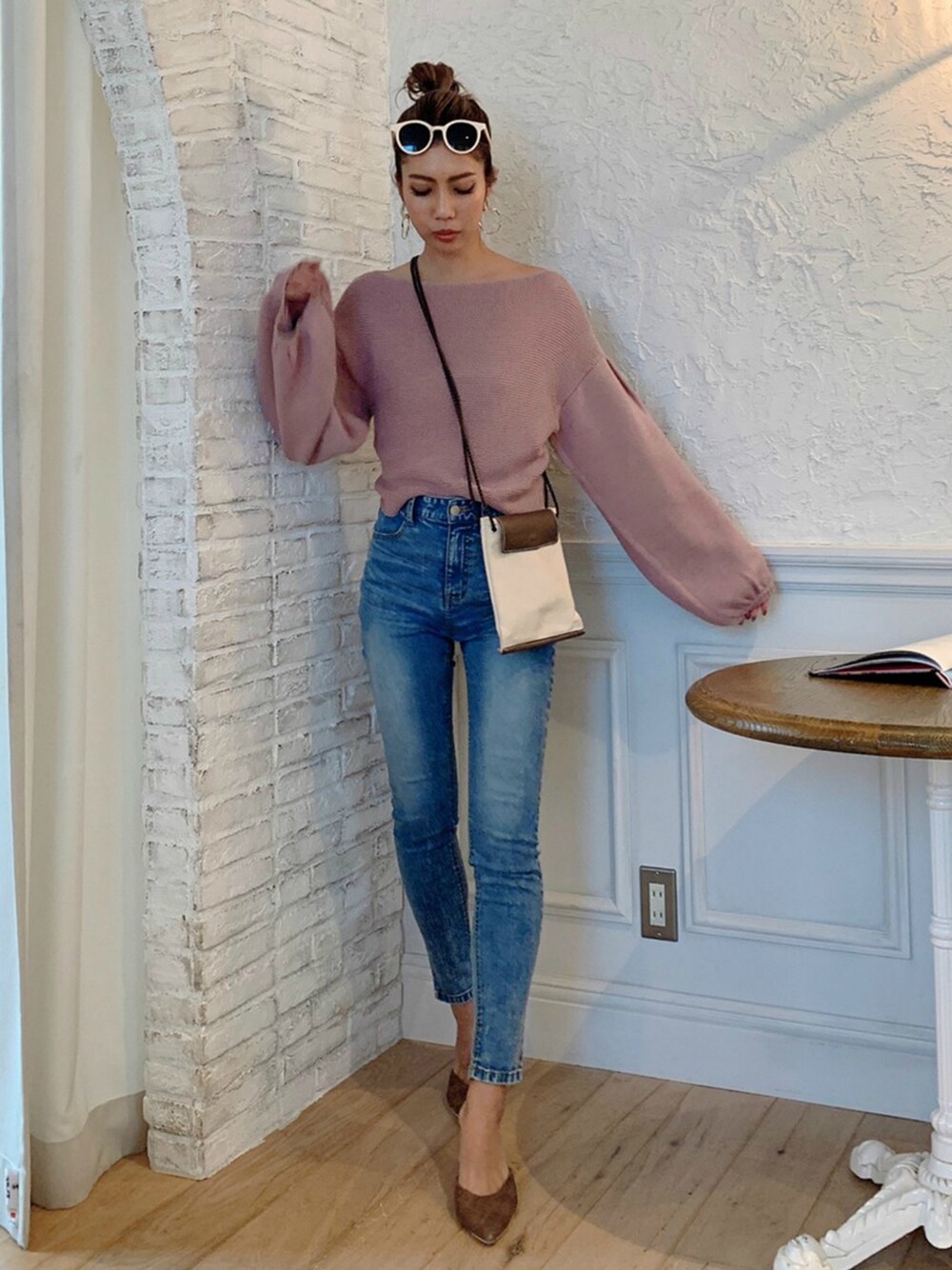 ピンクトップスにデニムで合わせて甘すぎない大人コーデ♪