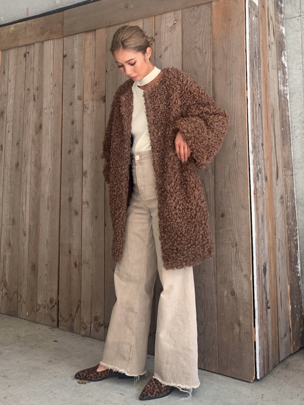 プードルファーコートも甘くならないようワイドパンツで大人っぽく☺︎