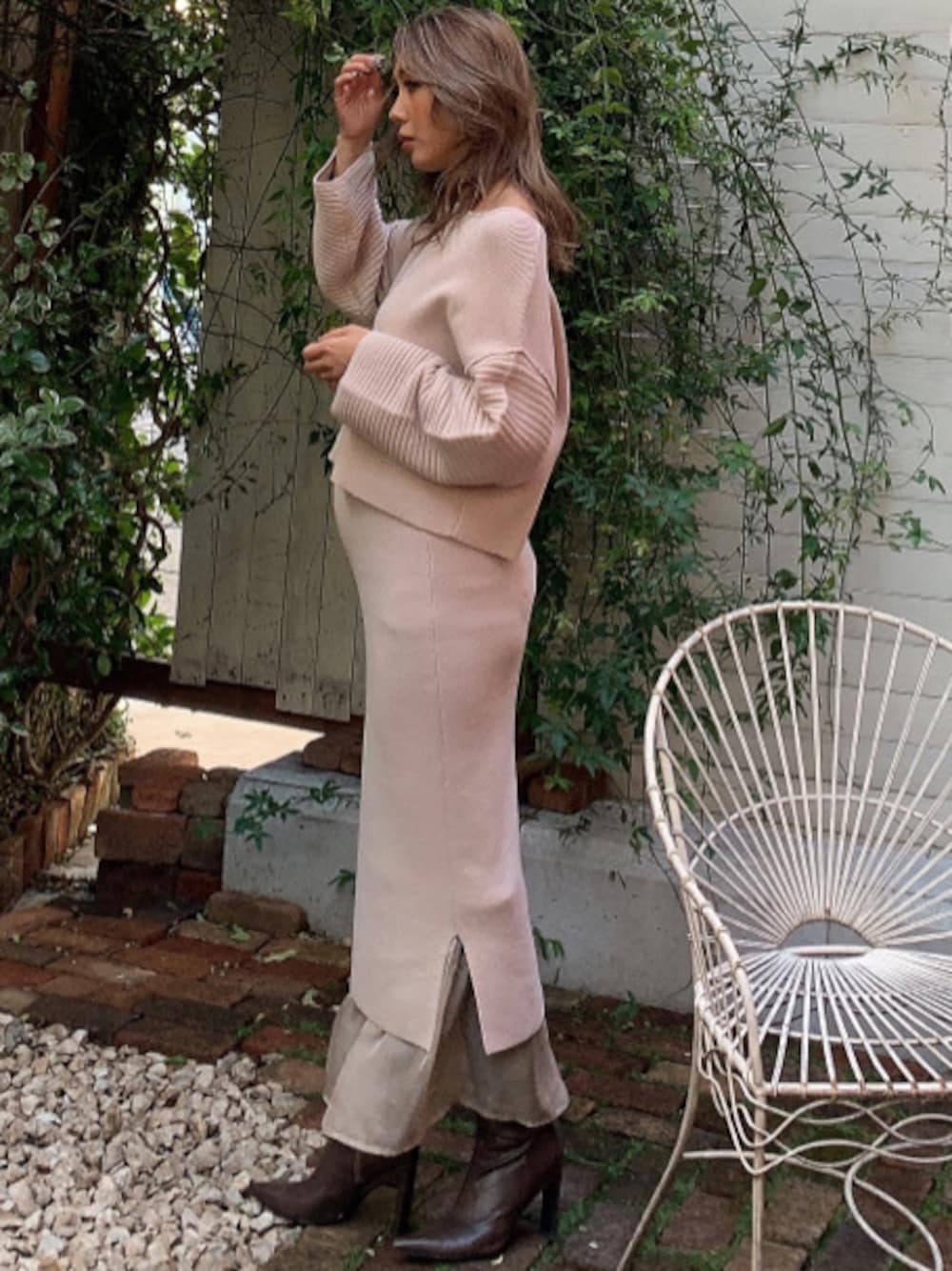yukino(RESEXXY)のスカート「裾シアードッキングニットスカート【セットアップ着用可能】」を使ったコーディネート