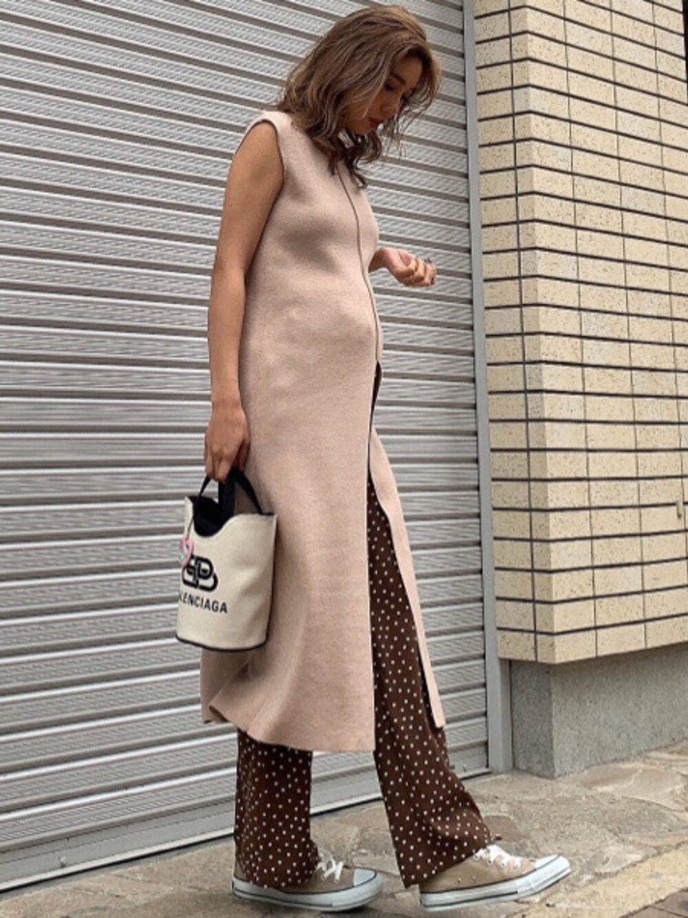 ドットを取り入れた春のワントーンコーデ❤︎ ざっくりスリットがおしゃれ!