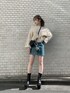 小林万由子(EVRIS)のブーツ「ステッチチャンキーヒールショートブーツ」を使ったコーディネート