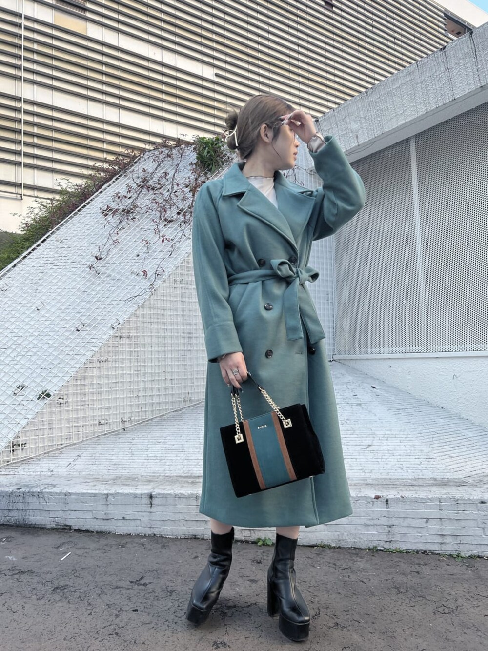 【カラーコートのキレイめコーデ】 【アウター】 シンプルなデザインなので着回しがしやすいコートです! 見た目以上に軽く袖も余裕があるので厚手のニットも着用可能☺ ウエストの位置に紐があるので締めて前で結んで頂くとスタイルアップになりこなれ感もプラスできます! 【スカート】 インナーパンツ付きのレザースカートです☺ 明るめのホワイトの色で可愛らしい雰囲気が出るのでレザー素材でも強く見えにくいのでおすすめです! 【バック】 毎年人気のハンドバッグ!ショルダー紐付きなので2WAYで使用可能です☺ 500mlのペットボトルと長財布がすっぽり入る収納力で仕切りがあるので収納しやすいのも嬉しいポイント! ブロッキングのカラーがEVRISらしい配色になっています! 冬物アイテムとマッチするスウェード素材なので高見えします♡