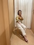 キャミソールとショートカーディガンのアンサンブル。微配色の組み合わせがお洒落な一着♡ カーディガンはショート丈なので、ハイウエストのボトムとの相性が良いです♪キャミソールはピタっとめなのでバストラインを綺麗に見せてくれます︎︎☺︎ 今回私はトップスのキレイカラーを引き立てる為にホワイトデニム合わせにしました♡ 再入荷で可愛さバージョンアップしたデニムとオープントゥーサンダル。154cmの私はワンロールアップでデニムちょうど良かったです!ウエスト60cm以下の方はウエストリボンをしっかりめに結ぶと◎この上からトレンチコートをざっくり羽織って休日ウィンドーショッピングがテーマ♡