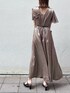 2021 SPRING DRESSLOOKで一目惚れしたドレス。ヴィンテージ感のあるジャカード素材を使用したさりげないペイズリー柄が上品な印象のコンビネゾン。スカートに見えるほどの贅沢ボリュームパンツは締め付け感が無いのでスタイルアップするのにストレスフリー。お袖のシアーフレアが女性らしさを感じさせてくれます〇。他とあまり被りたくない、とお考えの方に手に取っていただきたい唯一無二な存在のドレスです。とことん渋く、格好良い雰囲気にしたかったので新作のロングジャケットを合わせ、小物類はネックレス以外明るさを入れずあえてダークトーンで整えました。