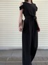 結婚式・二次会・ディナー・セミフォーマルなシーンにもぴったりの1着。ストレートのラインがすっきりとした印象のオールインワン◎ 154cmの私でも身長が高く見えて着てびっくりしました。ウエストサイズS/64 M/68 なので、普段60cm前後の細身の方はしっかりめに絞ると綺麗に着ていただけます〇 私は結婚式の参列をイメージして、ブラックだけど華やかな印象になるよう小物はゴールドで固めました!二の腕が程よく隠れてくれるので腕出したくないけど、スッキリ見えたい!という方にオススメです。一枚で着用可能ですが、肌寒い季節には明るいトーンのショール・ボレロ。セミフォーマルなシーンでしたらジャケットを肩がけして頂くと良いです◎ 個人的には、ラメ感のあるショールを前/後で結ばずにそのまま肩にかけるスタイリングが好きです〇。